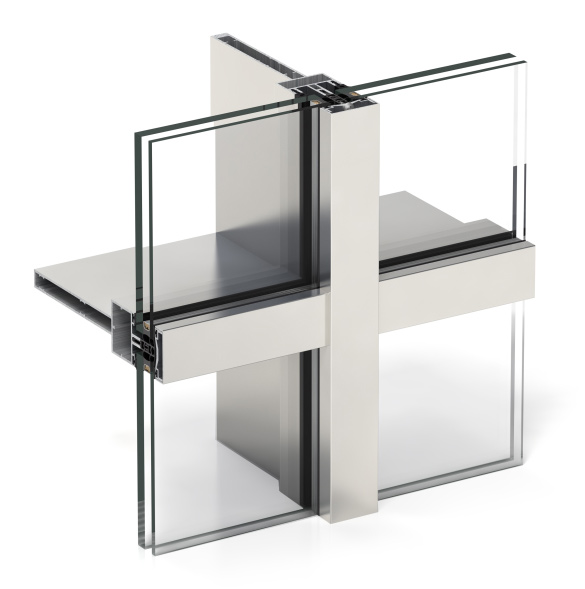 Su perfilería de montantes y travesaños igualan su profundidad, dando lugar a un montaje enrasado que proporciona uniformidad a la estética interior de la fachada.