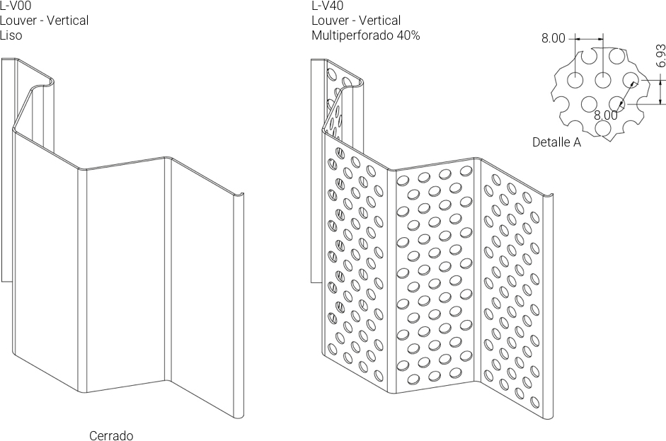 Sistema louver tipo lamas enganchables entre sí desarrollado por Rolformados® en aluminio 100% para el cerramiento de áreas que tienen como requisito controlar tres factores ambientales; paso de luz, ventilación y retención de agua. Este sistema es producido en tecnología Rolforming, asegurando así la precisión y la posibilidad variable de fabricar piezas hasta de 6 m (19.68') de longitud en múltiples acabados y colores.